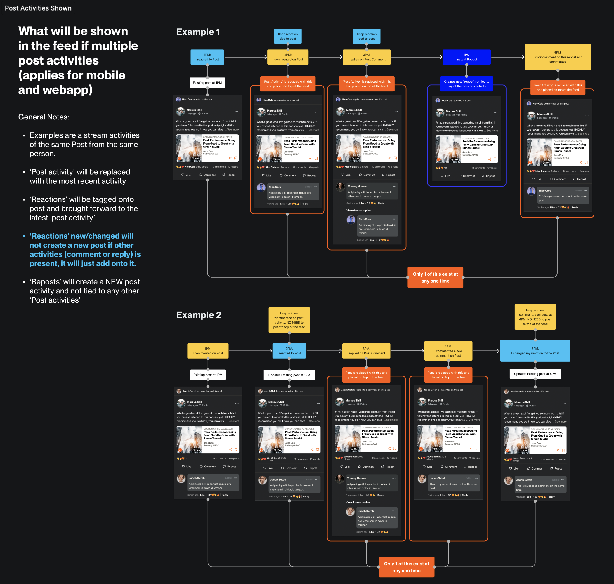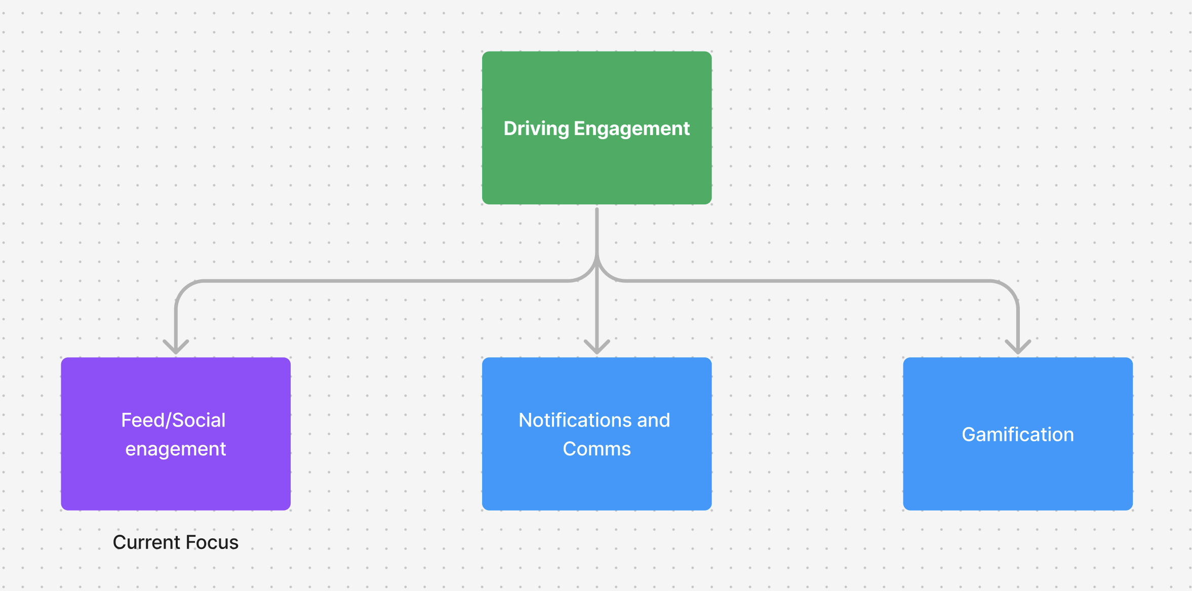 Given the scope of the feed feature, we divided the work into four key product requirement documents, focusing on Activity, Post Types, Reactions, and overall Improvements.