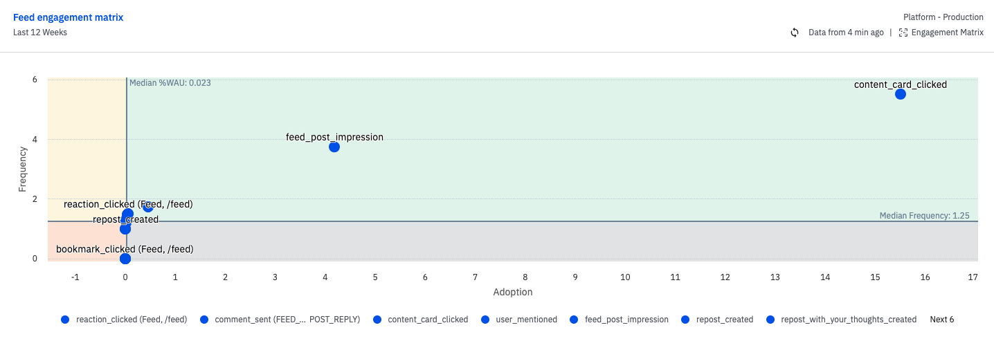The overall results did not show a huge uptake on the full interaction functionality of feed, although it did create a new way of discovering content on the platform.