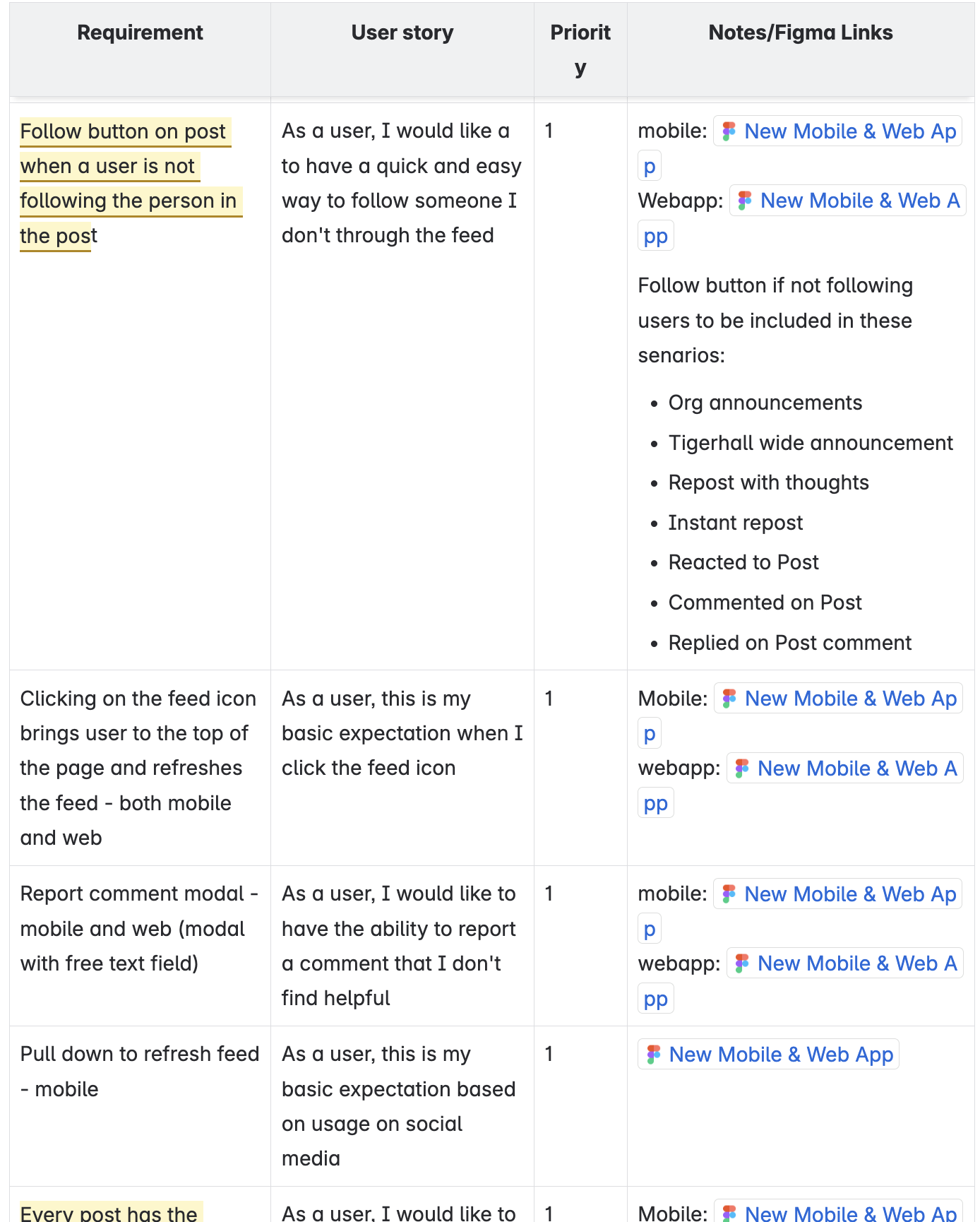 For each PRD, I included links to the corresponding sections in Figma to ensure engineers could easily access the designs and implement the requirements efficiently.